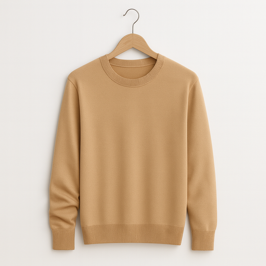 Leo - Men's Round Neck Pure Cashmere Sweater Caramel