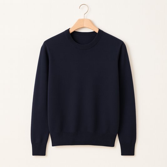 Leo - Men's Round Neck Pure Cashmere Sweater Dark Blue